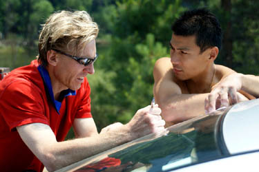 You can still read about what happened when we broke the record in July. LATEST UPDATEOctober 12: We did it! 2:37:05. New Record! Thanks to the four parties that let us go by. Especially Hanah and Hilde and also Paul, Travis, John, Polish party and everyone else and our loving wives. PREVIOUS UPDATESOctober 8: 2:48:23. We were 6 minutes faster than our record run from July 2nd when we made it to Dolt Tower in 48 minutes! Somehow a few tiny rope snags and roughness on the top half cost us some 11 minutes. Looks like all the marbles are in Sunday's basket. October 5: Yuji and Hans climbed the Nose in 3:38 Sunday afternoon, passing five parties and topping out under headlamp. Yuji's foot is healing nicely from his fall early last week. Big Thank you to Dr Jeffrey of Modesto for working on Yuji, and creating faster healing Sunday morning. We are optimistic about a record run on Wednesday the 8th and Sunday the 12th. October 2nd: Yuji is headed into the Bay Area to do a little gym climbing with Hans while giving his ankle a little rest. He was walking normally today. No noticeable limp. October 1st: CRASH! Yuji takes a 20 meter fall on "FreeStone" and bruises his heel. Xray reveals no breaks or fractures. Holding pattern....... September 29th: Yuji and Hans climb the Nose in 4:07 September 26th: Yuji and Steve Schneider climb up the Nose in around 7 hours. September 20 and 21: Yuji and Hans go to Utah High Adventure Mountain Film Festival and accept LifeClimb Achievement Award. September 18th: Yuji arrives from Japan. If you see him in person, ask Hans about this. Hans would like to THANK: Hans' top secret, elite athlete recovery training. |